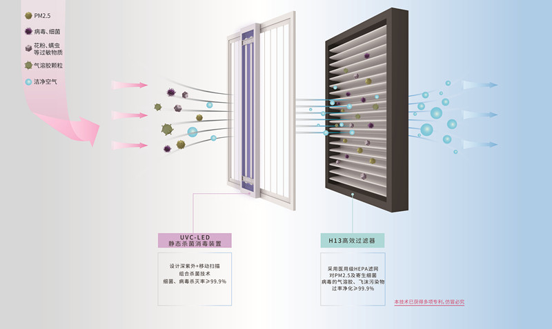 通風(fēng)系統(tǒng)是眾多人員密集的密閉場所保持內(nèi)外空氣流通的必要手段,既然無法長時間關(guān)閉,那給通風(fēng)系統(tǒng)戴上可以過濾和消殺細菌病毒的”口罩“已是必然選擇。