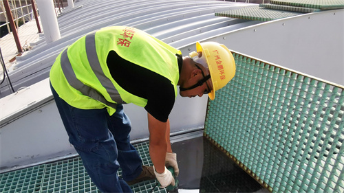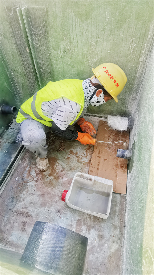 玻璃鋼水箱內(nèi)部猶如蒸籠。施工人員正蹲在地上手工糊接預(yù)留管道,短短幾分鐘的勞作就足以讓面罩下的臉頰汗水淋漓。刷涂樹脂、糊接玻璃絲氈布、壓實(shí)去除氣泡……如此繁復(fù)的工序,在她靈巧的手中不斷重復(fù),直到達(dá)到規(guī)范的質(zhì)量標(biāo)準(zhǔn)。