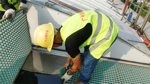 池體密封安裝現(xiàn)場熱浪撲人,被太陽無死角直射的施工人員,連續(xù)數(shù)日被灼烤,都被曬成黑黝黝的“蒸漢子”。