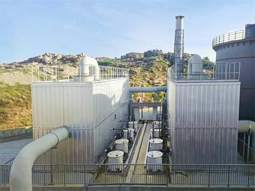 項目一:該項目位于浙江紹興,是全國規(guī)模最大的污水處理工廠之一,所產(chǎn)生的H2S、NH3等臭氣濃度較高,總處理氣量為378000m3/h,密封設計總面積約33000m2,采用生物洗滌過濾設備,搭配優(yōu)勢菌種馴化培養(yǎng)技術、專利生物填料和PLC全自動控制系統(tǒng),獲得良好的治理效果并降低了運營成本。